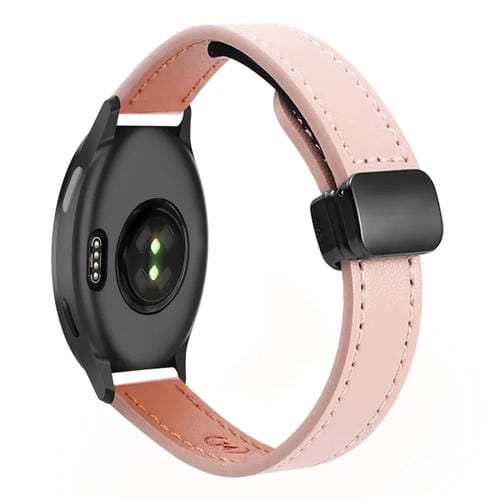 Correa de Reloj Cuero Microfibra 20mm con Hebilla Magnética para Garmin Active 5 (Rosa Sakura)