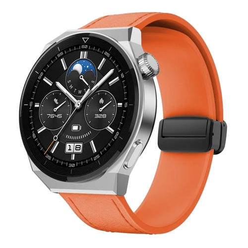 Correa de Reloj de Cuero y Silicona con Hebilla Magnética Negra 22mm (Naranja)