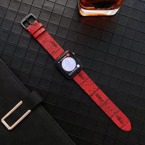 Correa de Reloj cuero genuino cocodrilo avestruz para Apple Watch Ultra 49mm Series 8 7 45mm SE 2 6 5 4 3 2 1 (Rojo)