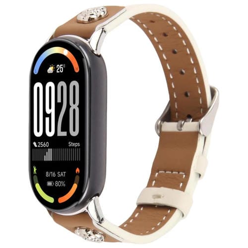 Correa de reloj de microfibra con remaches y tacto de piel de camelia para Xiaomi Smart Band 10/9/8 (blanca)