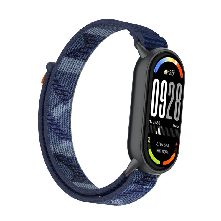 Correa de reloj de nailon con cierre de velcro para Xiaomi Smart Band 10/9/8 (azul silencioso)
