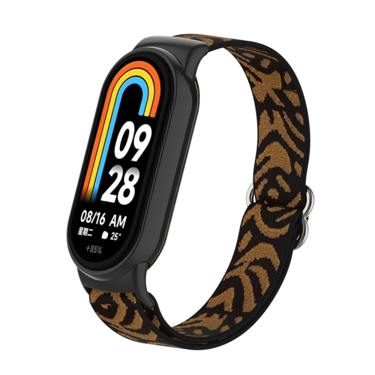 Correa de reloj de nailon elástica lisa con tapón de plástico para Xiaomi Smart Band 9/8 (estampado de leopardo)