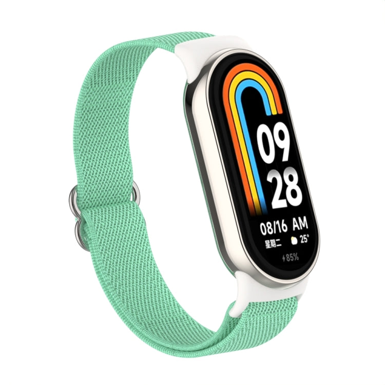 Correa de reloj de nailon elástica lisa con tapón de plástico para Xiaomi Smart Band 9/8 (mar azul)