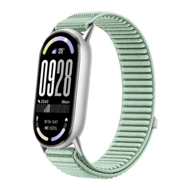 Correa de reloj de nailon tejido con cierre de velcro y interfaz metálica para Xiaomi Smart Band 10/9/8 (azul turquesa)