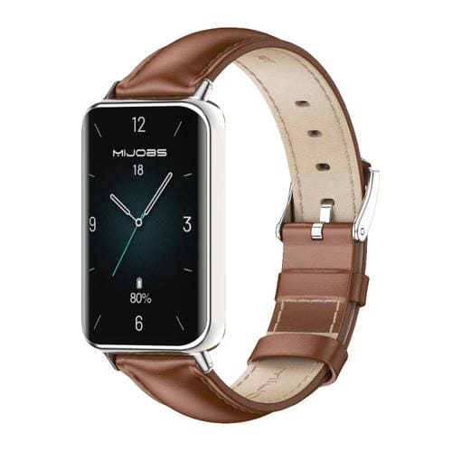 Correa de Reloj Piel de Vaca Mijobs para Honor Band 9 (Marrón y Plateado)