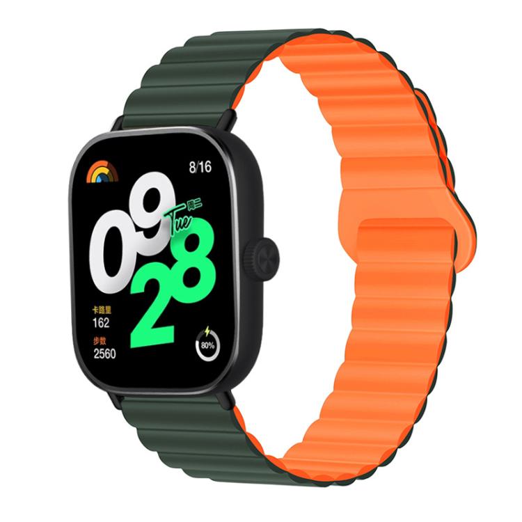 Correa de reloj magnética de silicona con hebilla invertida para VivoWatch GT 2 / iQOO Watch GT 2 (verde oscuro + naranja)