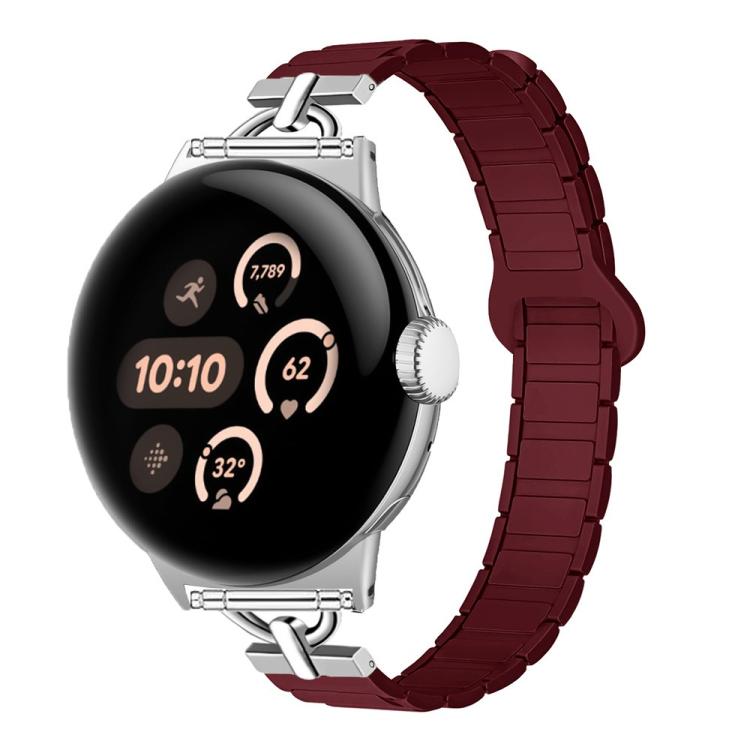 Correa de reloj magnética de silicona con tres cuentas en forma de D de 41 mm para Google Pixel Watch 4 / 3 / 2 / 1 (rojo vino)