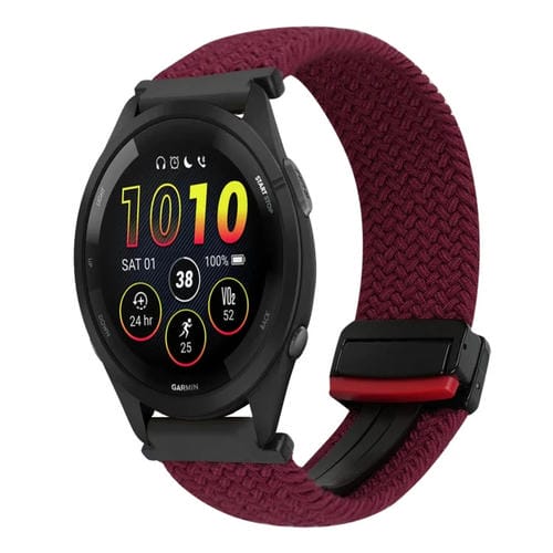 Correa de Reloj Trenzada con Hebilla Magnética 22mm para Garmin Forerunner 265 (Negro, Arena y Rojo)