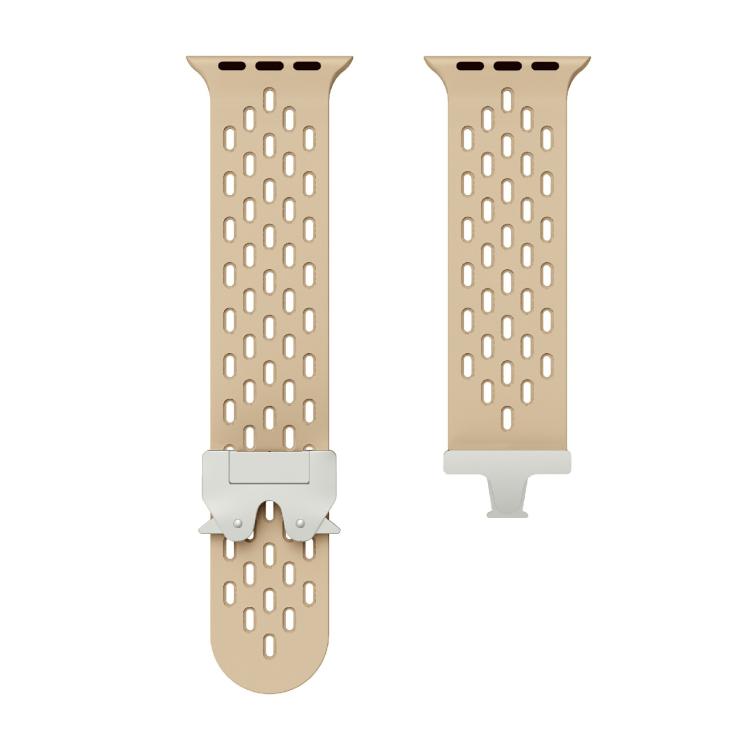 Correa de silicona con hebilla de paraguas plateada Kalebol Mesh para Apple Watch de 46 mm, 49 mm, 45 mm y 44 mm (té con leche)