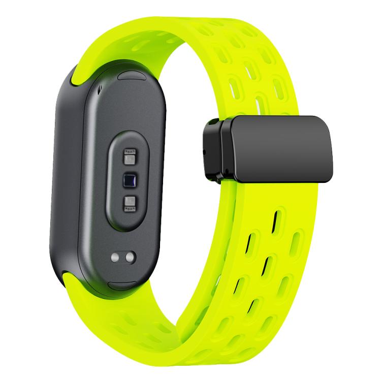 Correa de silicona con hebilla magnética negra para Xiaomi Smart Band 10/9/8 xDfind Holes (verde lima)