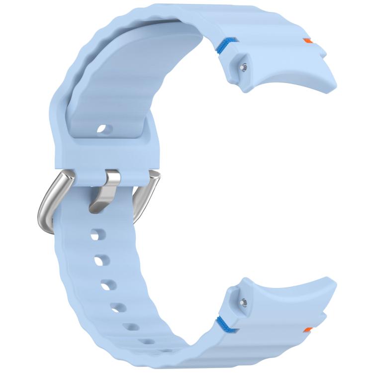 Correa de silicona con hebilla plateada y costuras onduladas para Samsung Galaxy Watch 7 de 40/44 mm (azul claro)