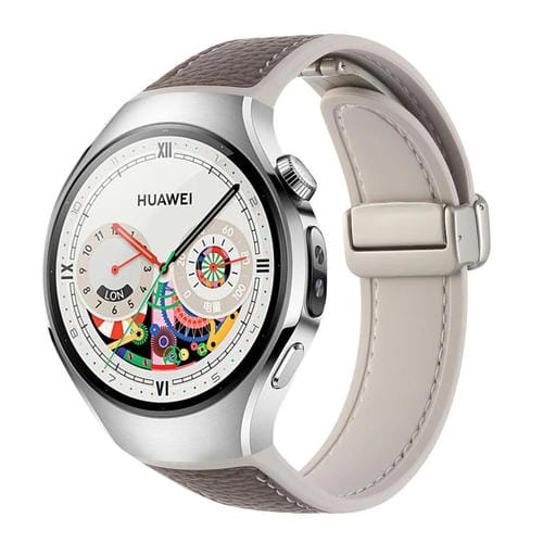 Correa de silicona híbrida con hebilla magnética para Huawei Watch 5 de 46 mm (gris, marrón, lichi, con textura de estrella)