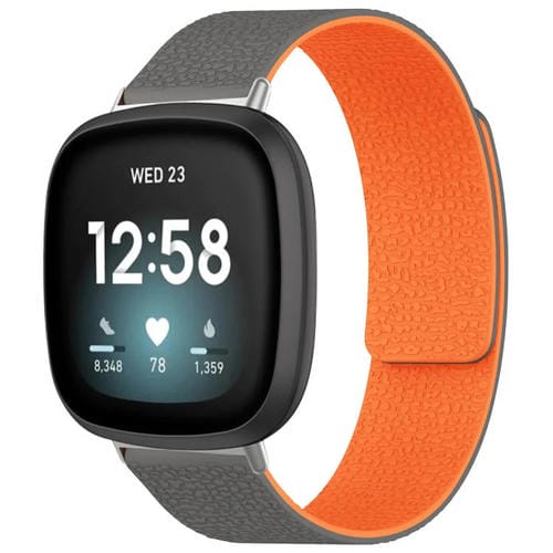 Correa de silicona magnética con textura de lichi para Fitbit Versa 4/Versa3/Sense2/Sense xDfind (gris y naranja)
