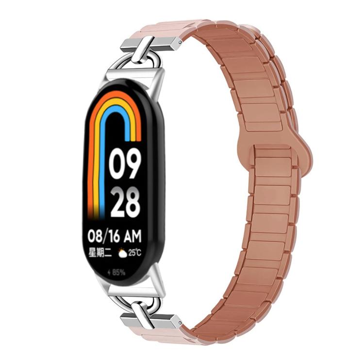 Correa de silicona magnética con tres cuentas en forma de D para Xiaomi Smart Band 10/9/8 (rosa y gris)