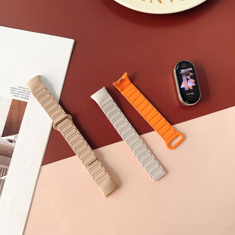 Correa de silicona magnética de tres cuentas para Xiaomi Smart Band 10/9/8 (naranja estrella)