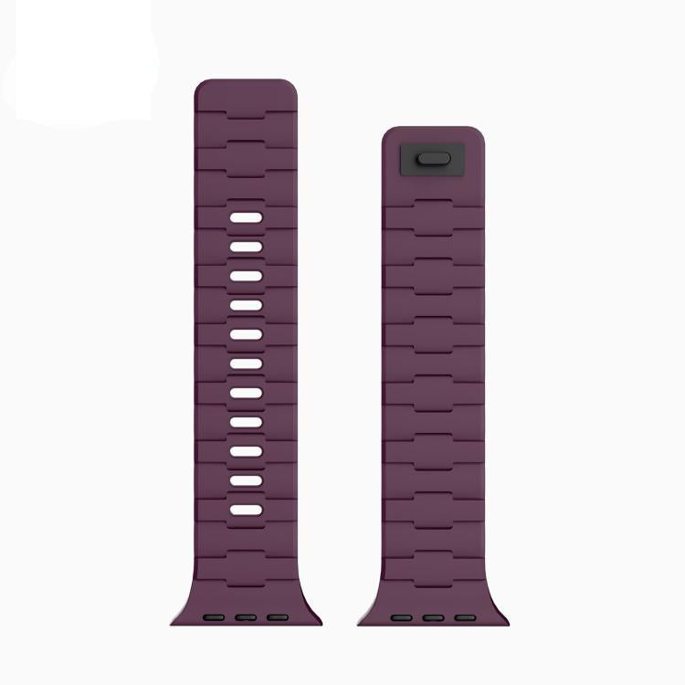 Correa de silicona magnética de un solo pasador con relieve de caballo para Apple Watch de 46 mm / 49 mm / 45 mm / 44 mm (morado baya)