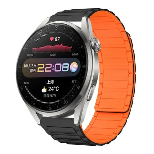 Correa de Silicona Magnética en Forma de I para Huawei Watch 3 Pro 22mm (Negra y Naranja)