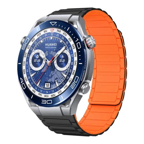 Correa de Silicona Magnética en Forma de I para Huawei Watch Ultimate 22mm (Negra y Naranja)