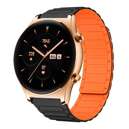Correa de Silicona Magnética en Forma de I para Reloj Honor Watch GS 3 22mm (Negra y Naranja)