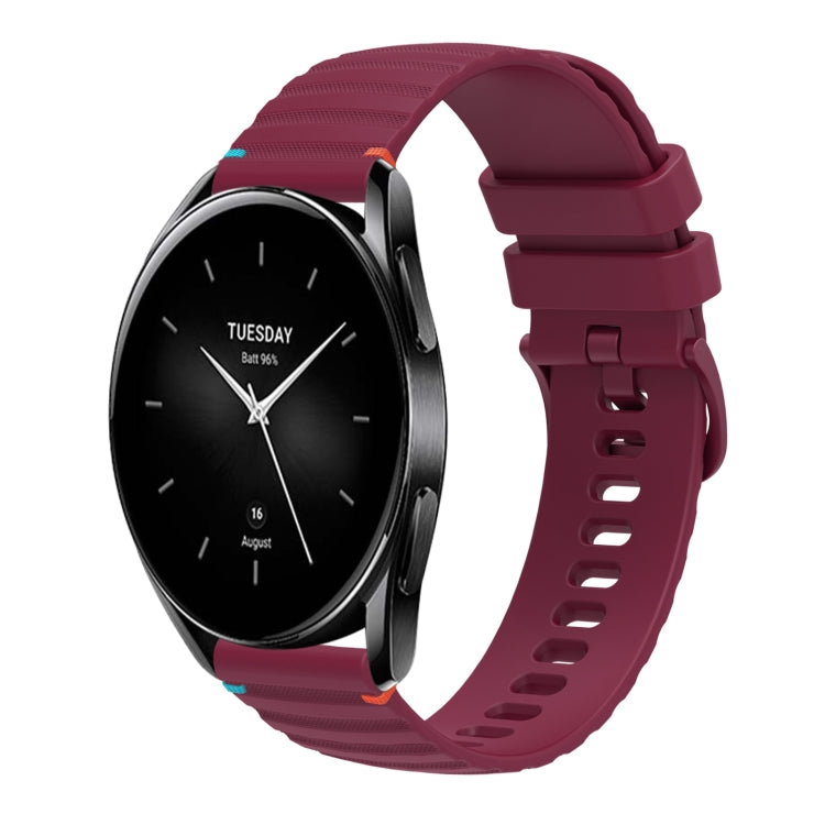 Correa de silicona para reloj Xiaomi Watch S2 con puntadas onduladas y puntos de 22 mm (rojo vino)