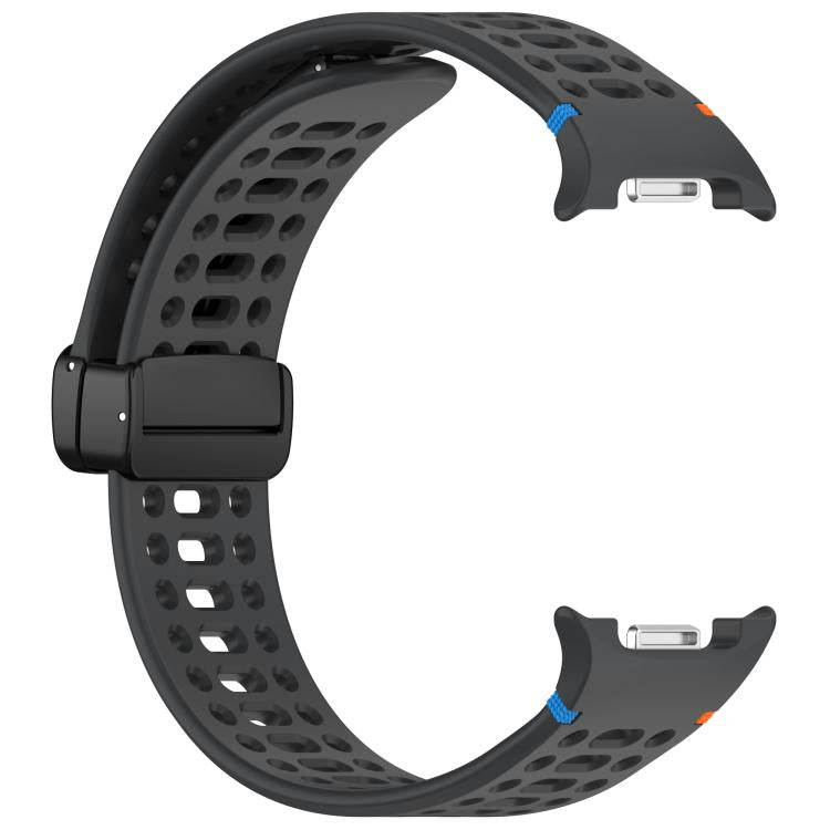 Correa de silicona transpirable con costuras y hebilla magnética negra para Samsung Galaxy Watch8/Watch8 Classic (gris)