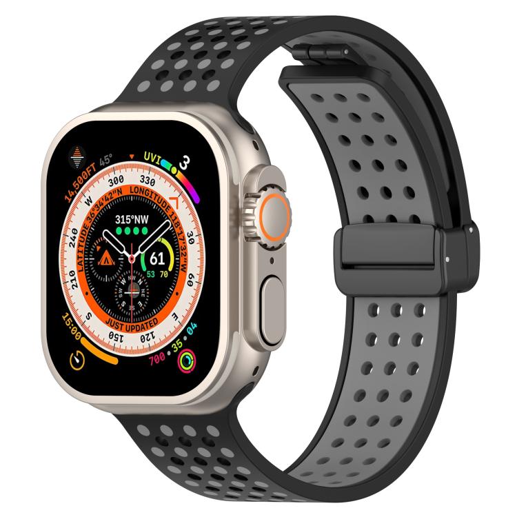 Correa de silicona transpirable con hebilla magnética para Apple Watch de 46 mm, 49 mm, 45 mm y 44 mm (negro y gris)