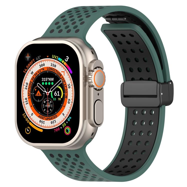 Correa de silicona transpirable con hebilla magnética para Apple Watch de 46 mm, 49 mm, 45 mm y 44 mm (verde oliva y negro).