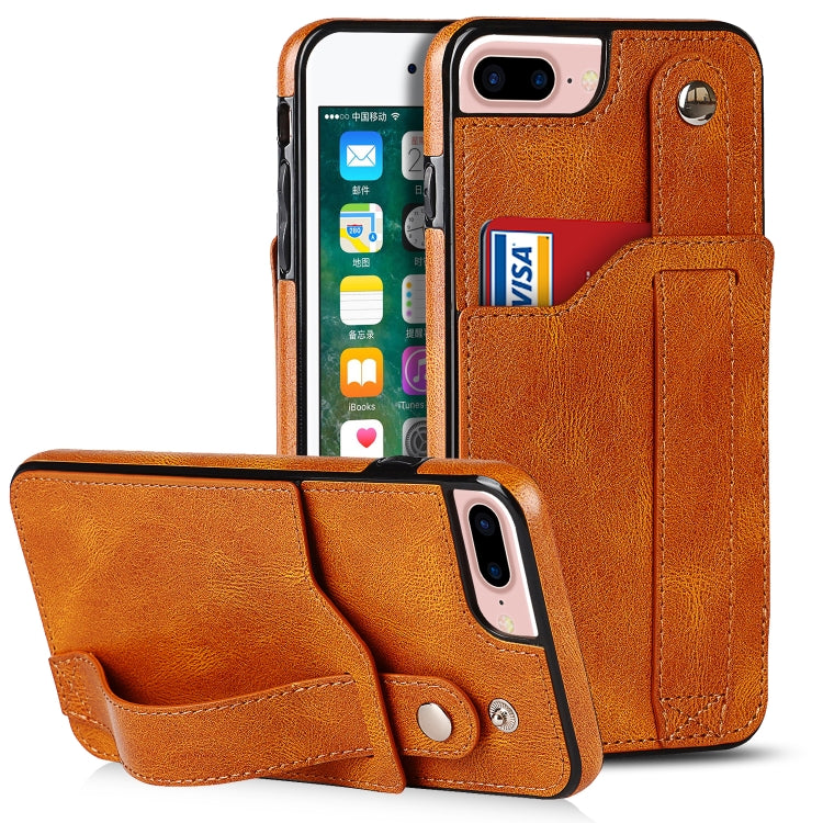 Funda TPU + PU Crazy Horse Texture para iPhone 7 Plus / 8 Plus con Ranura para Tarjeta y Soporte de Correa de Muñeca (Amarillo)