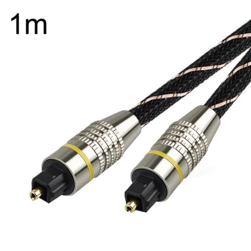 • Longitud de 1 metro, cabezal de fibra óptica con Lente convexa pulida, Puerto chapado en oro de 24K, tecnología de sonido envolvente Dolby AC3 y DTS, protección antipolvo en ambos extremos, trenza de nailon Flexible y resistente a la tracción