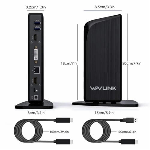 • 1x Estación de Acoplamiento 4K HD Tipo C Wavlink UG39PD1 13 en 1 para Tres Monitores (Enchufe de la UE)