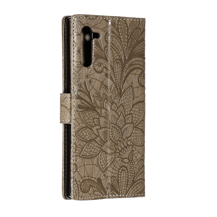 Estuche de Cuero Galaxy Note10 Tapa Horizontal Soporte Ranuras Tarjetas Billetera Marco Fotos Cordón (Gris)