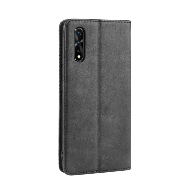 Estuche de Cuero con Tapa Horizontal con Textura de Caballo Loco Retro con Hebilla Magnética para Vivo Iqoo Neo / S1 / Y7S / Z5, con Soporte, Ranuras para Tarjetas y Marco de Fotos (Negro)