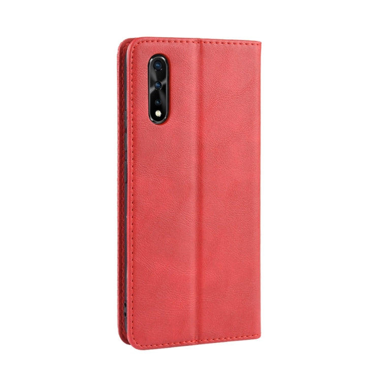 Estuche de Cuero con Tapa Horizontal con Textura de Caballo Loco Retro con Hebilla Magnética para Vivo Iqoo Neo / S1 / Y7S / Z5, con Soporte, Ranuras para Tarjetas y Marco de Fotos (Rojo)