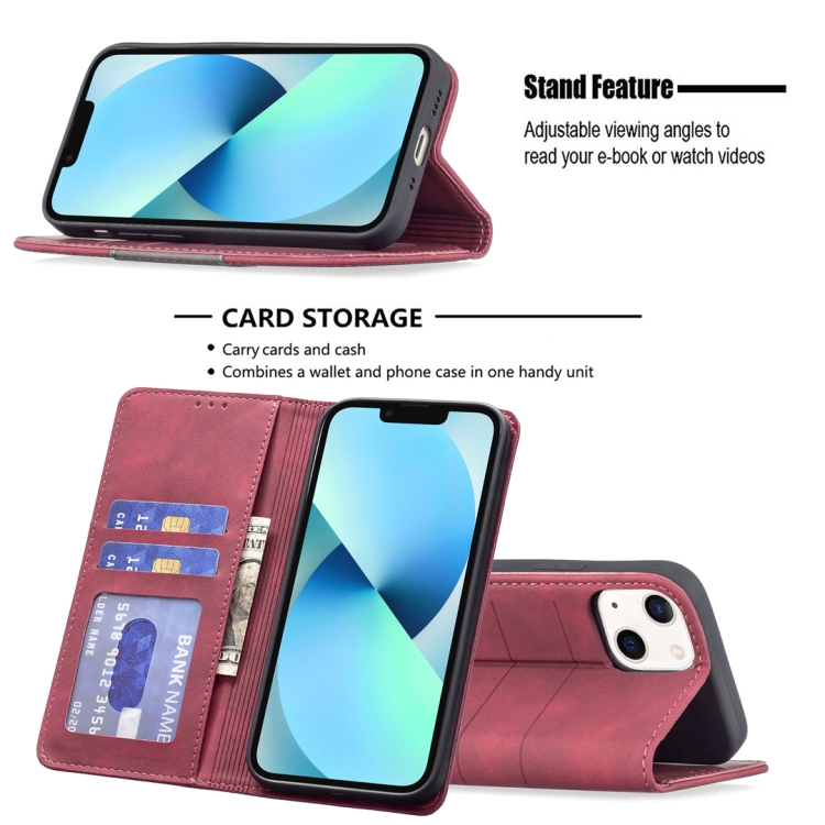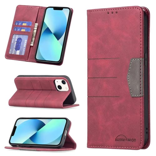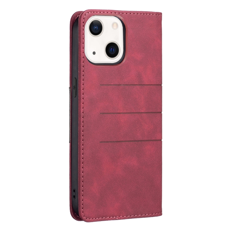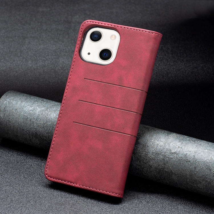 Estuche de Cuero Empalme Magnético para iPhone 13 Mini (Rojo)
