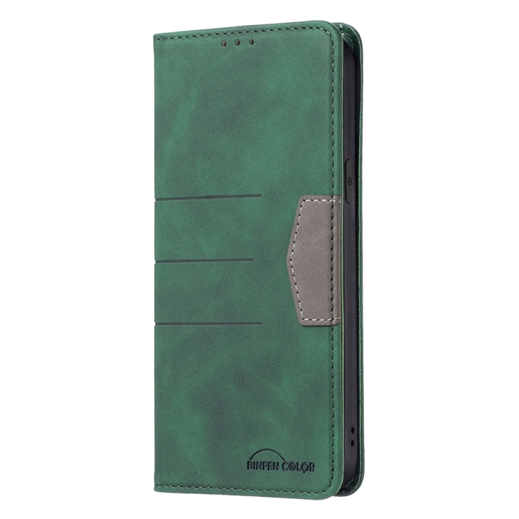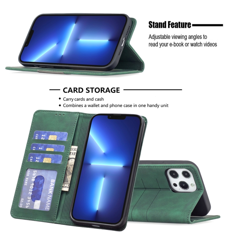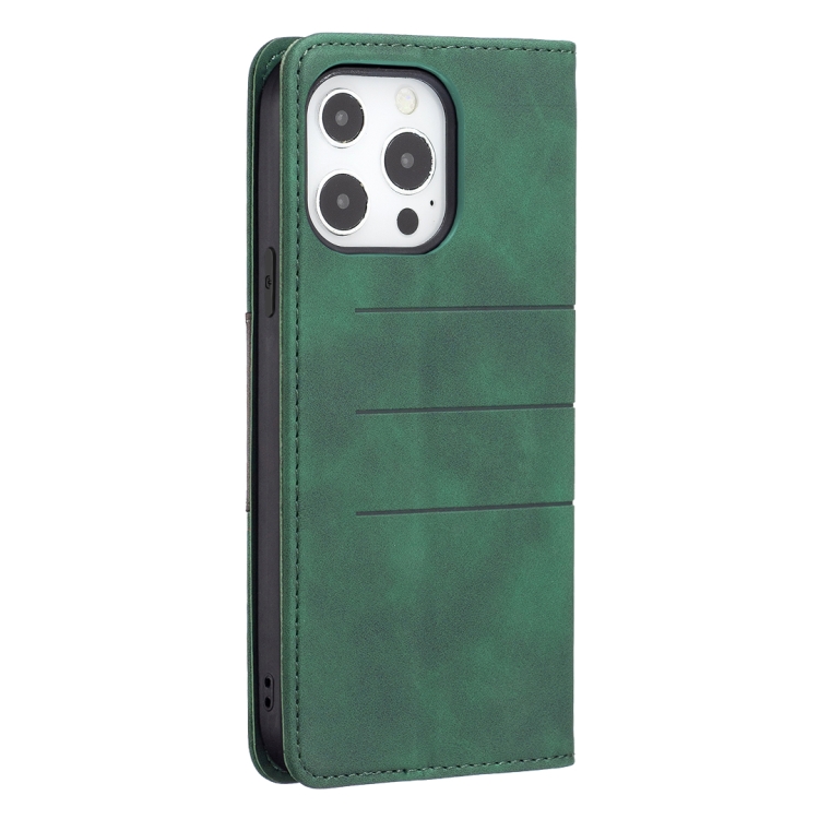 Estuche de Cuero Magnético de Empalme para iPhone 13 Pro (Verde)