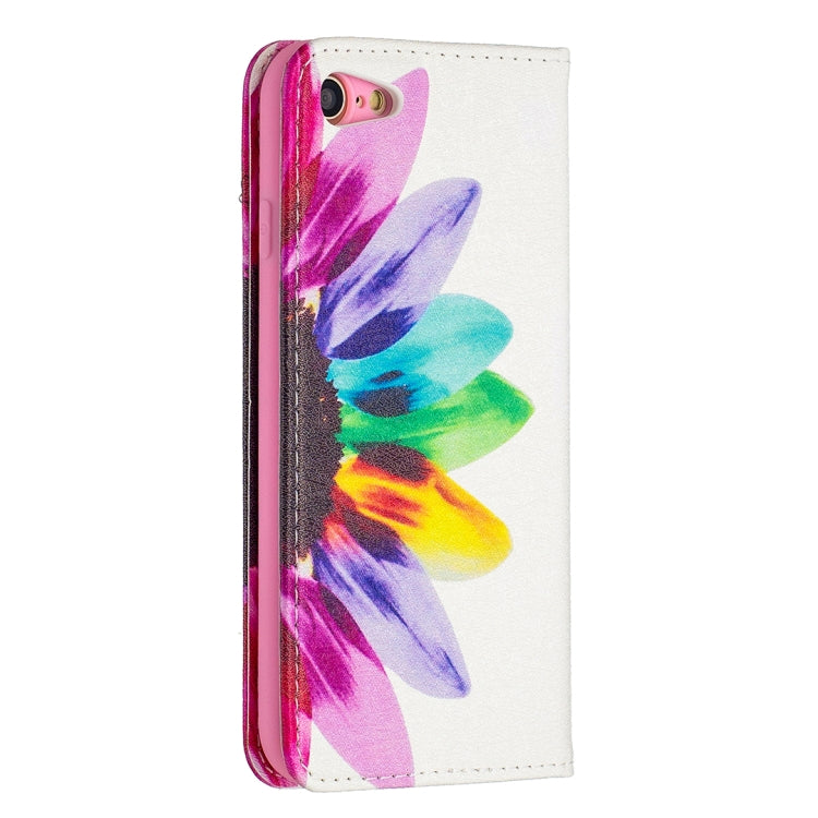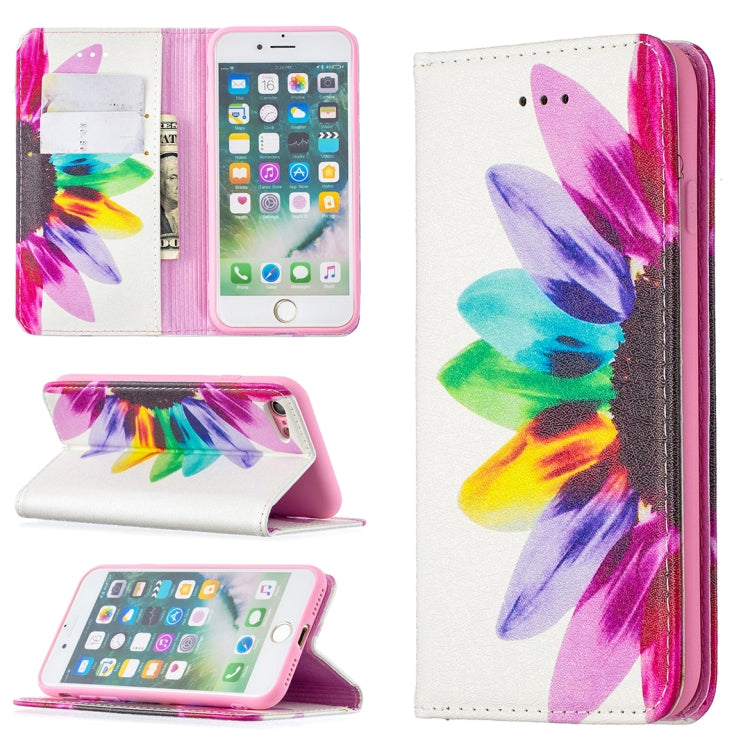 Estuche de Cuero PU iPhone 8 y 7 con Tapa Horizontal Magnética Invisible Soporte Ranuras y Billetera (Sun Flower)