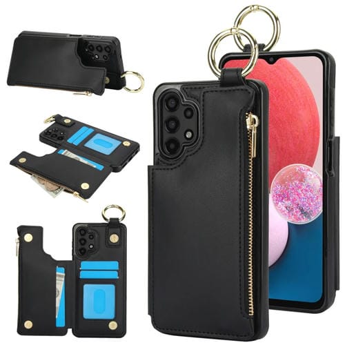 Estuche para Teléfono Samsung Galaxy A13 4G/5G Rfld con Cremallera y Anillo de Doble Hebilla Antirrobo (Negro)