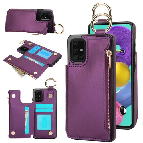Estuche para Teléfono Samsung Galaxy A71 4G Rfld con Cremallera y Anillo de Doble Hebilla Antirrobo (Morado Oscuro)