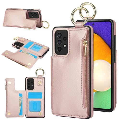 Estuche para Teléfono Samsung Galaxy A72 4G/5G Rfld con Cremallera y Anillo de Doble Hebilla Antirrobo (Oro Rosa)