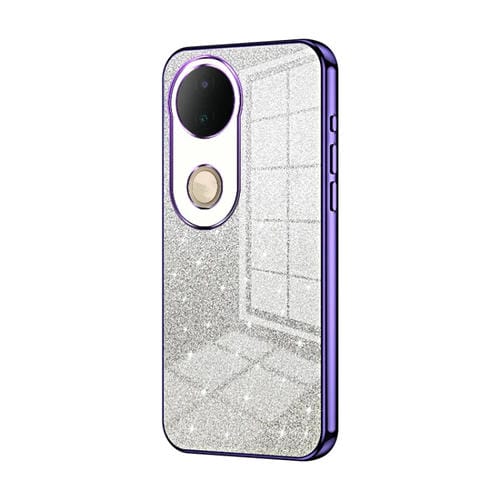 Estuche para Teléfono con Purpurina En Degradado Electrochapado En Polvo para Vivo S20 (Morado)