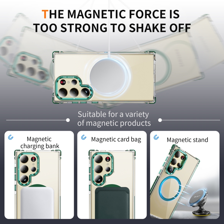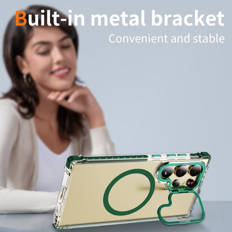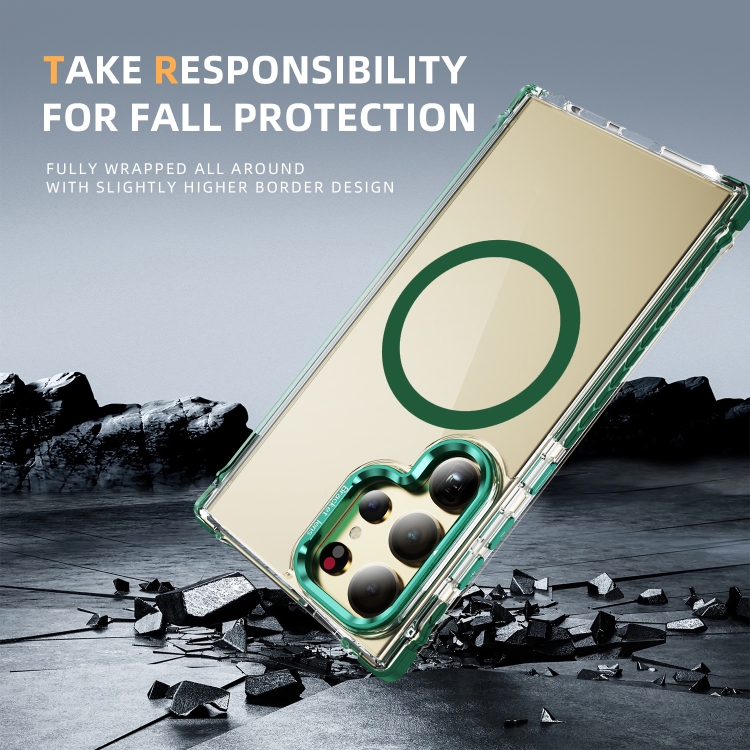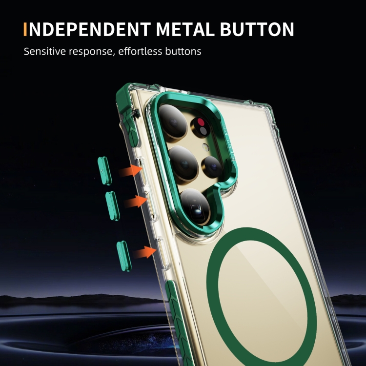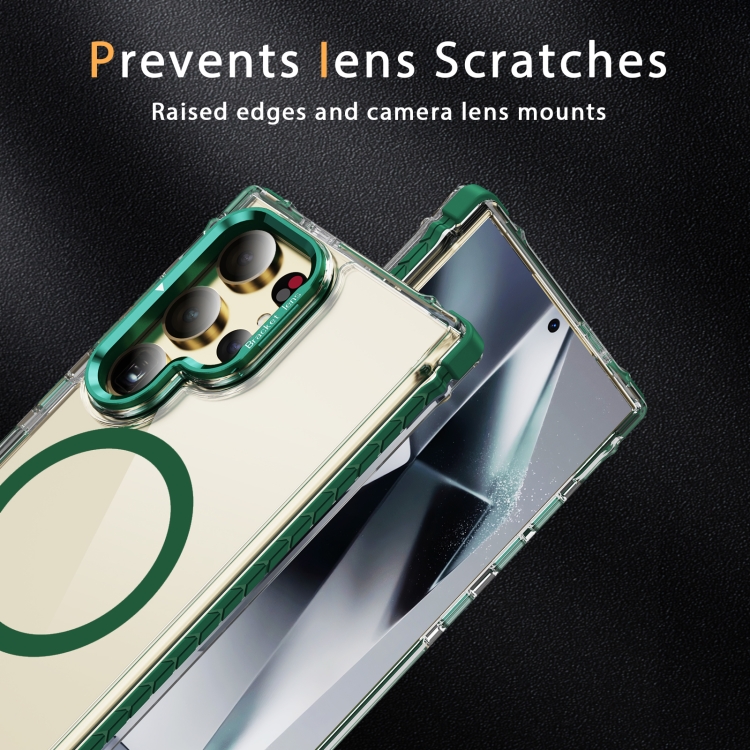 Estuche para Teléfono Samsung Galaxy S24 Ultra 5G Soporte para Lente Magsafe Transparente (Verde)