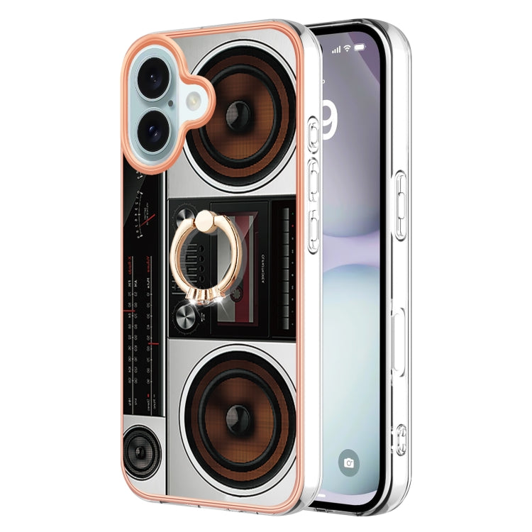 Estuche para Teléfono Imd Doble Cara con Galvanoplastia y Soporte para Anillo para iPhone 16 (Radio Retro)