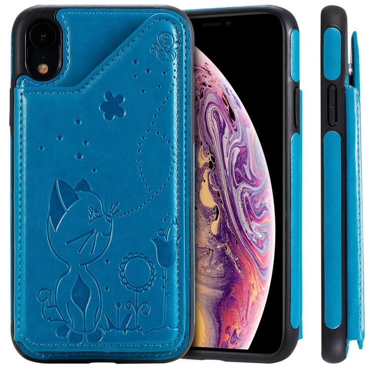 Estuche Protector iPhone Xr a Prueba de Golpes con Estampado de Abeja y Gato Ranuras para Tarjetas Marco de Fotos (Azul)