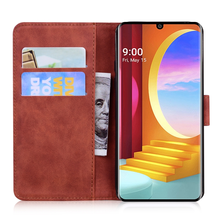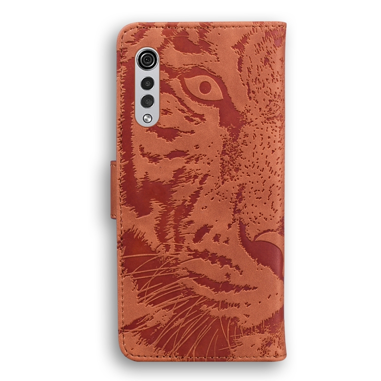 Funda de cuero horizontal con patrón Tiger para LG Velvet / G9 con tarjetero y billetera (Marrón)