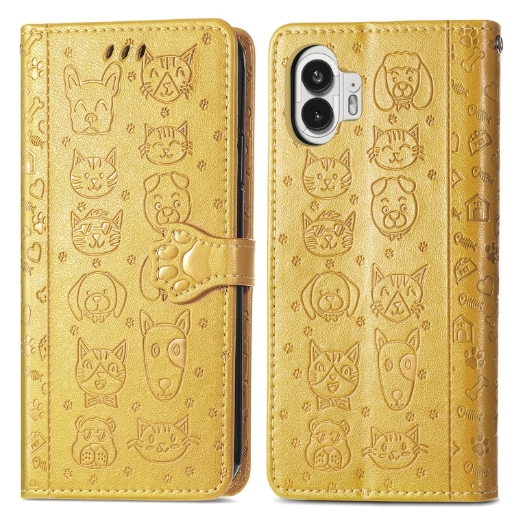 Estuche de Cuero For Nothing Phone 2 CAT And Dog en Relieve (Amarillo)
