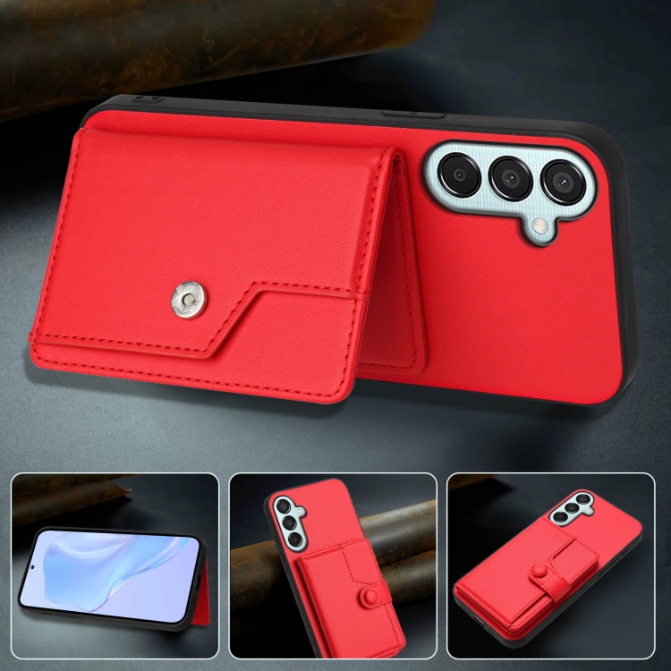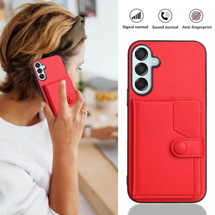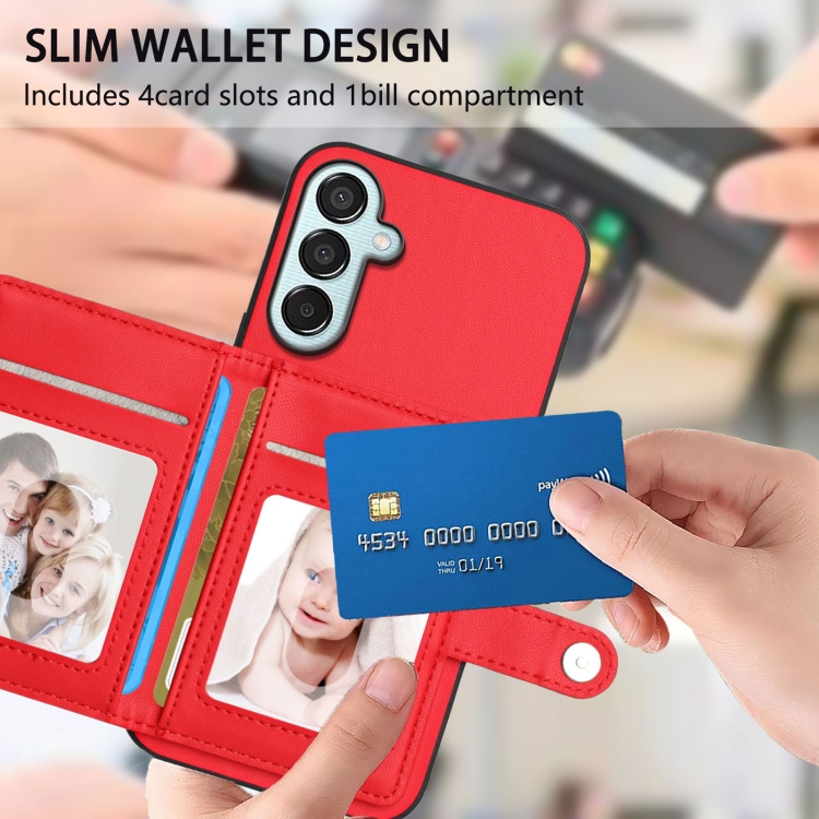 Funda Antirrobo Rfid para Samsung Galaxy M15/F15 con Botón y Tarjetero (Rojo)