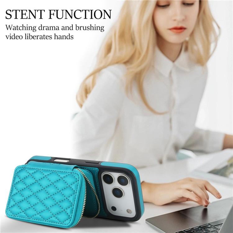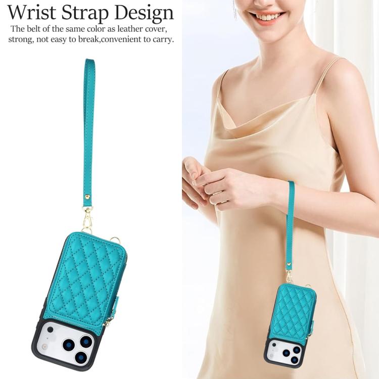 Funda AwQuer con cierre cruzado y parte trasera de cuero con diseño rómbico para iPhone 17 Pro (verde)