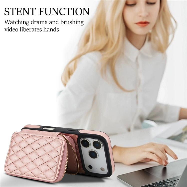 Funda AwQuer con cierre cruzado y parte trasera de cuero romboidal para iPhone 17 Pro (oro rosa)