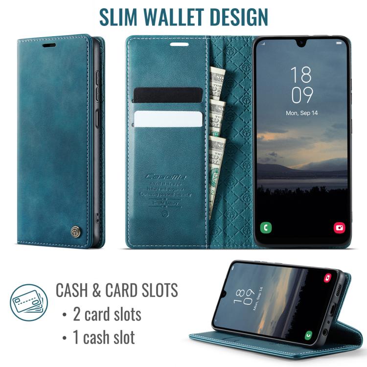 Funda CaseMe 033 para Samsung Galaxy A13/A04s, forro de piel de becerro, microfibra y bloqueo RFID (verde)