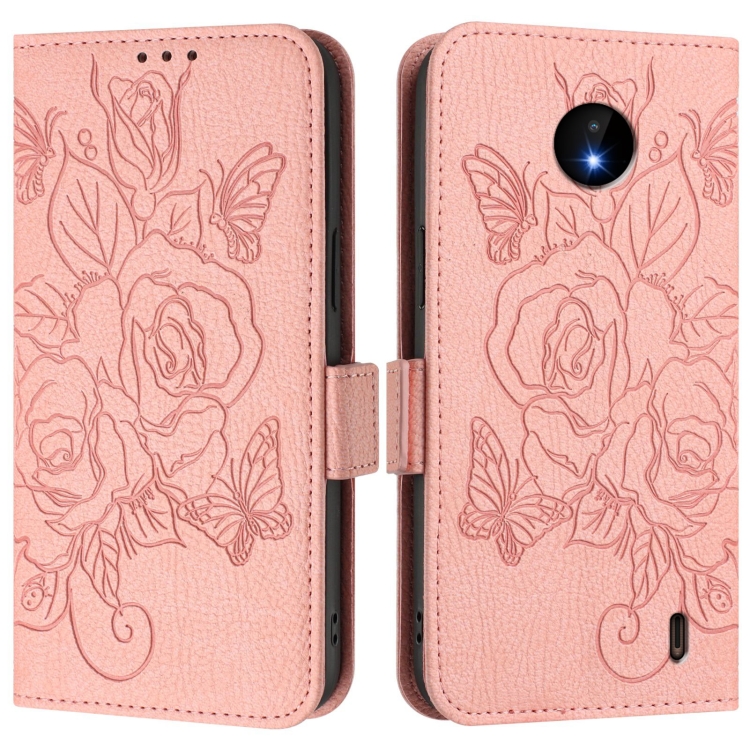 Funda de Cuero Antirrobo RFID con Relieve para Nokia C10/C20 (Rosa)
